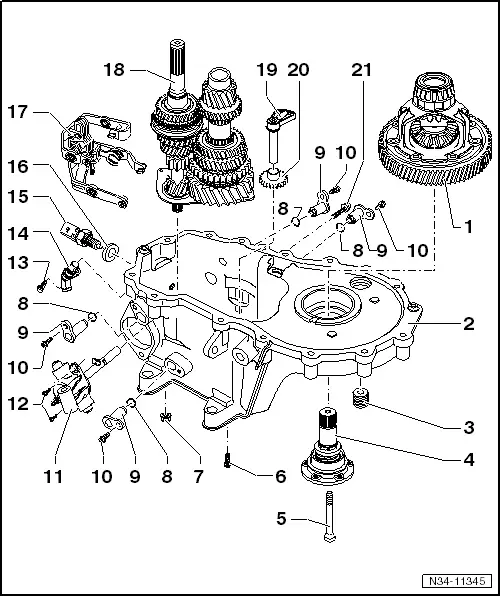 | 11 - | Selector shaft with selector mechanism cover |