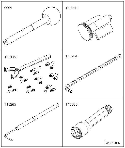 | If camshaft hub cannot be locked, withdraw crankshaft stop -T10050- until pin is clear of bore. |