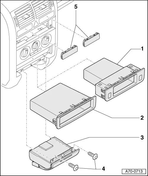 | q | Reach with both hands into storage compartment -1-, move hands apart and pull out storage compartment -1-. |