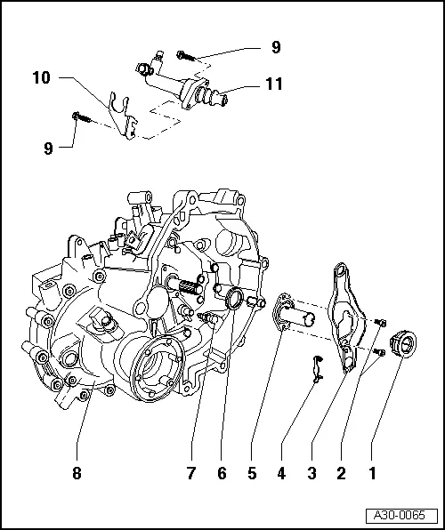 | q | Remove and install together with clutch release lever → Item and guide sleeve → Item → Fig. to → Fig. |