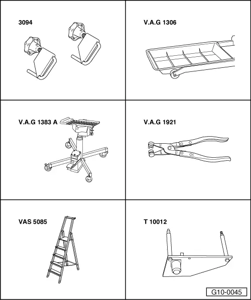 | t | Drip tray for workshop hoist -VAS 6208- or -V.A.G 1306- |