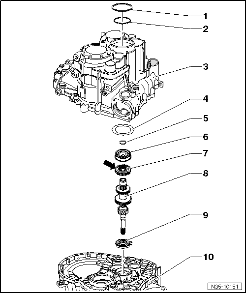 | q | Can only be fitted on modified gearbox housing (from gearbox manufacturing date 10 04 6 to approx. 20 01 8) → Chapter |