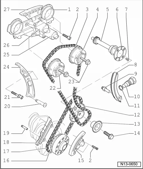 | 27 - | Guide rail for camshaft timing chain |