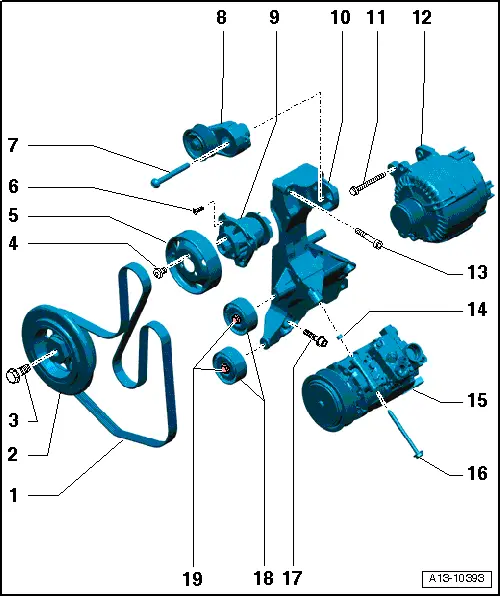 | Poly V-belt drive - exploded view of components |