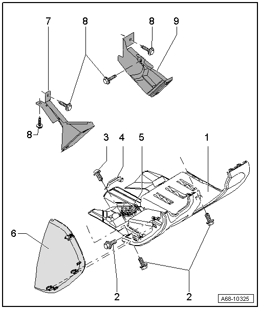 | Exploded view of storage compartment (driver side) with knee bolster / knee airbag |