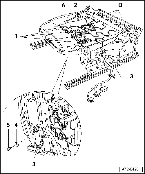 | – | Disengage spring mat -2- at locations marked -A- (2x). |