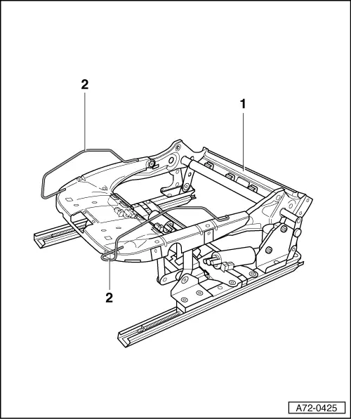 | – | Detach support wires -2- (2x) from sports seat pan -1-. |