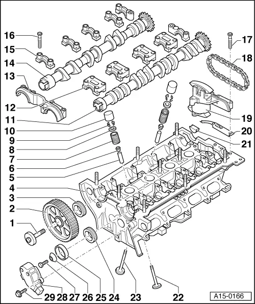 | q | Removing and installing → Chapter „Removing and installing camshafts and hydraulic chain tensioner“ |