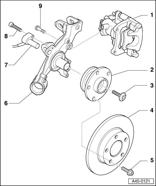 | Removing and installing parts of ABS system on rear axle (vehicles with front-wheel drive) |