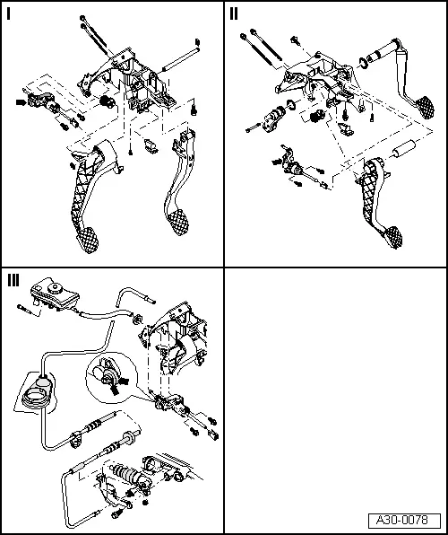 | t | → Chapter „Exploded view - pedal cluster (RHD vehicles)“ |