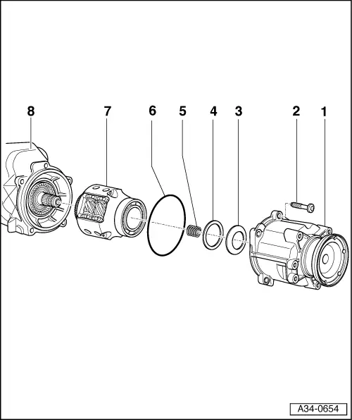 | q | Dismantling and assembling → Servicing 6-speed manual gearbox 0A3, four-wheel drive; Rep. Gr.34 |