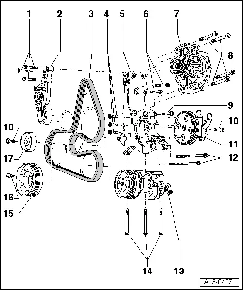 | q | Before removing, mark direction of rotation with chalk or felt-tipped pen. If the belt runs in the opposite direction when it is refitted, this can cause breakage. |