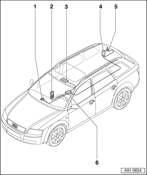 | q | Connectors on mobile telephone operating electronics control unit -J412- → Chapter |