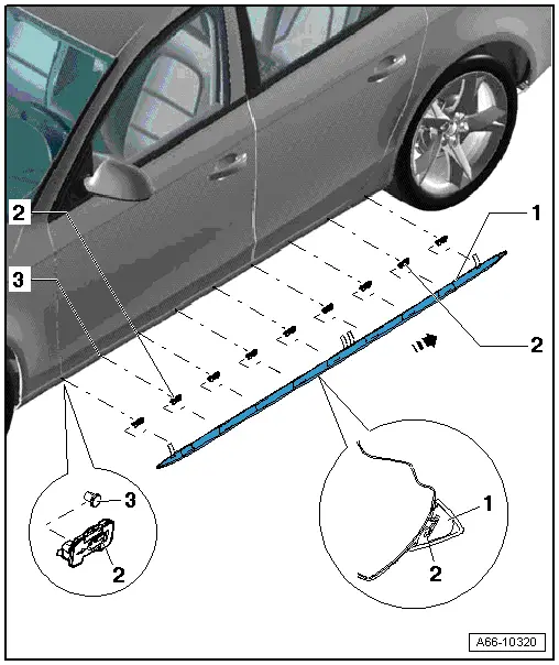 Note| When the stone deflector strip is detached, the clips are pulled off the retaining pin and must be renewed. |