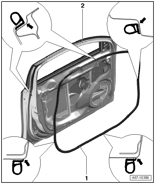 Note| t | The complete outer door seal is bonded on and can only be renewed. |