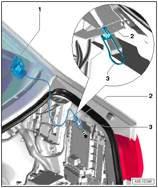 | – | Detach cable from convenience system central control unit -J393- in luggage compartment and pull through towards the front. |