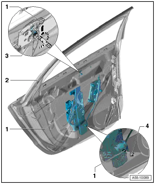 | – | Release threaded pins for window regulator motor and push through inner panel → Anchor. |