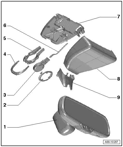 | Exploded view of interior mirror with lane departure warning (Audi lane assist) |