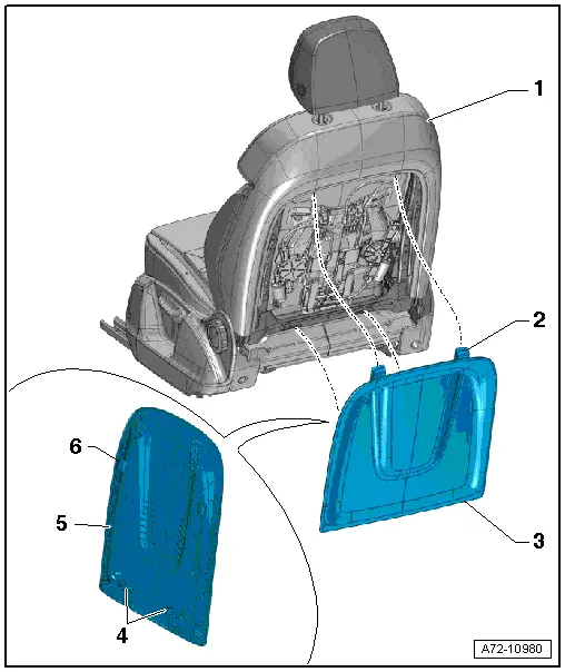 Note| t | The exploded view relates to the standard seat (front). The backrest cover panel is similar on the other seat versions. |