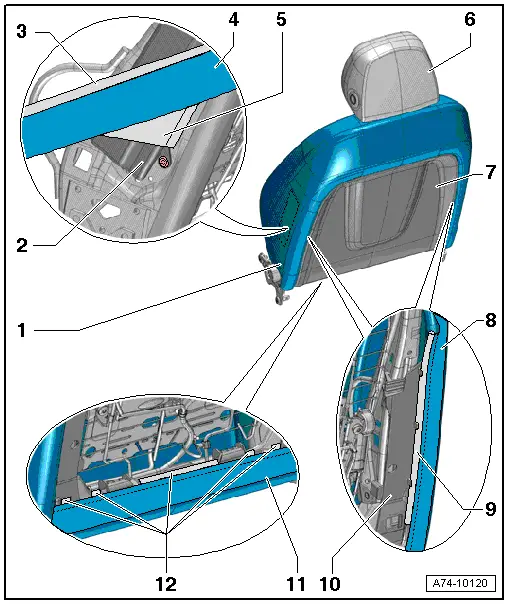 Note| The exploded view relates to the standard or sports seat (front, with manual or electric adjustment) and the convenience seat (front). |