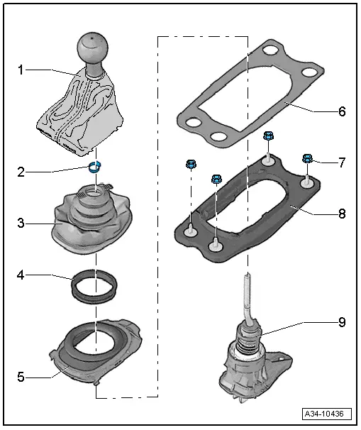 | Exploded view - gear knob with gear lever boot |