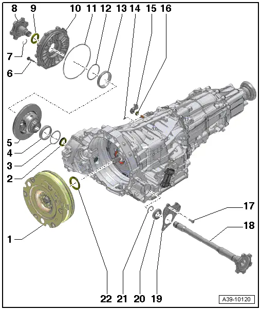 q | Removing and installing → Chapter „Renewing flange shaft oil seal (left-side)“ |