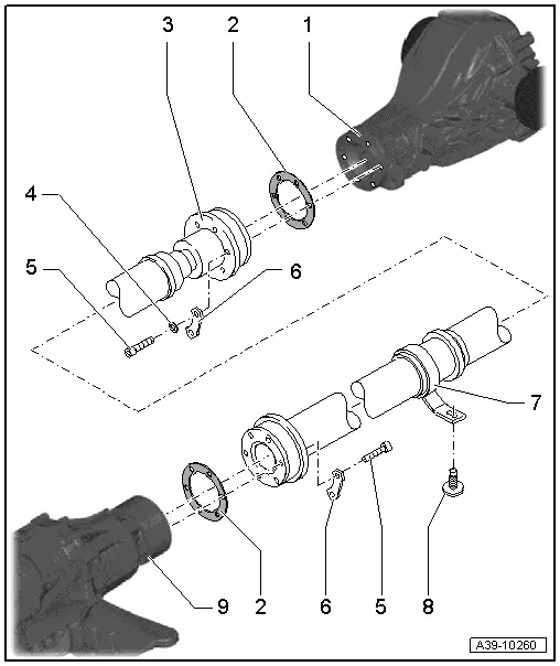 Removing and installing propshaft with bolted connection at gearbox end > < Components