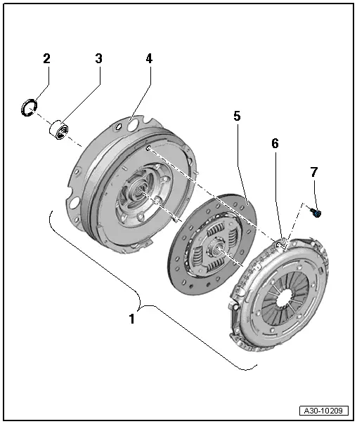 | q | Removing and installing → Chapter „Removing and installing pressure plate and clutch plate (Sachs version)“ |