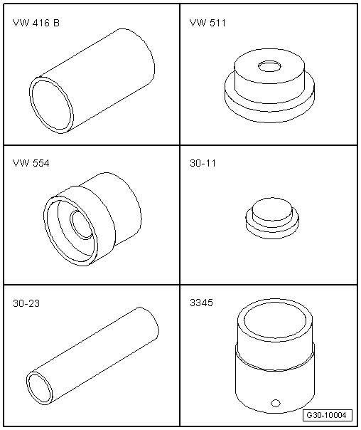 | Then apply press tool -VW 554- to internal puller and press out needle bearing. |