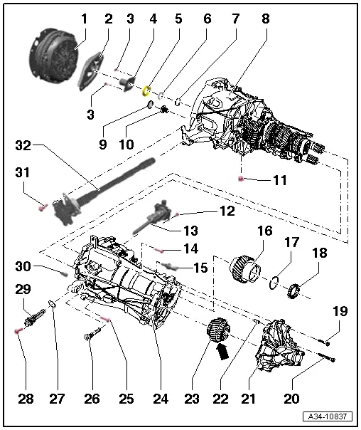 | Fitting sequence - dismantling and assembling gearbox → Chapter. |