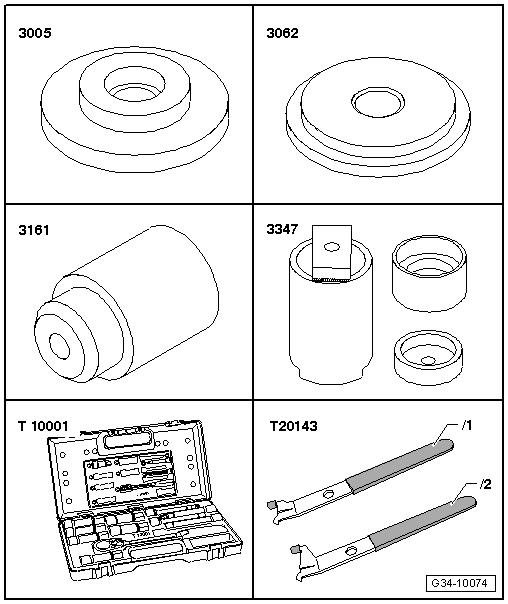 | t | Thrust pieces for drive pinion bearing -VW 470- |