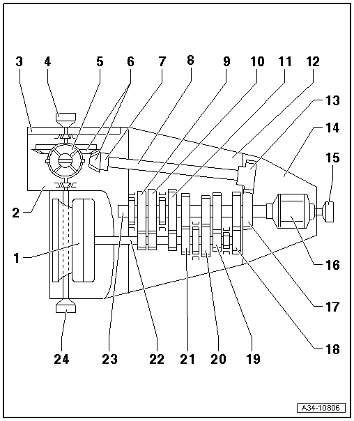 | q | Consists of pressure plate, clutch plate and dual-mass flywheel with flange for drive plate |