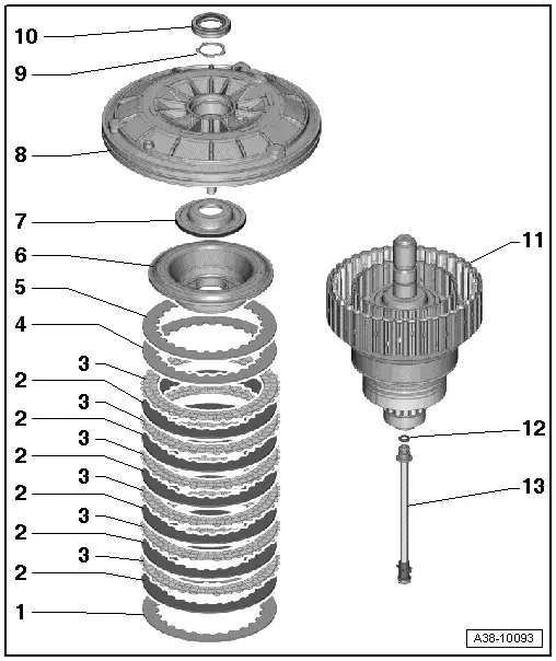 | If the contact/sealing surface -arrow A- is scored or scratched, the pressure plate -2- must be renewed. |