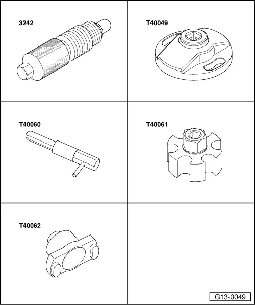 –  Apply adapter -T40061- to the heads of the loosened bolts.