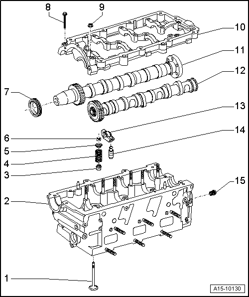 | q | Removing and installing → Chapter „Removing and installing camshafts - cylinder head (left-side)“ |