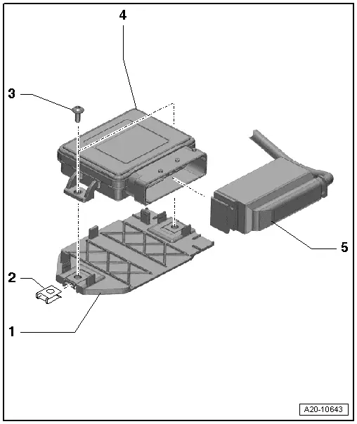 Note| Fitting location: control unit for reducing agent metering system -J880- is underneath active tank. |
