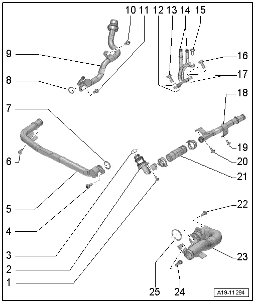 | Coolant pipes - exploded view |