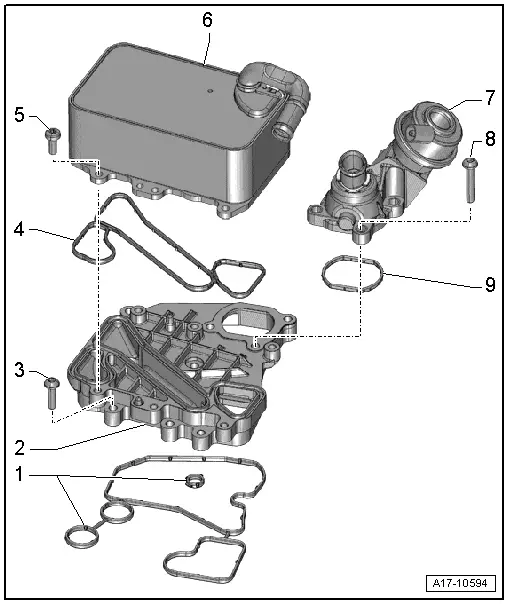| q | Removing and installing → Chapter „Removing and installing sealing flange (pulley end)“ |