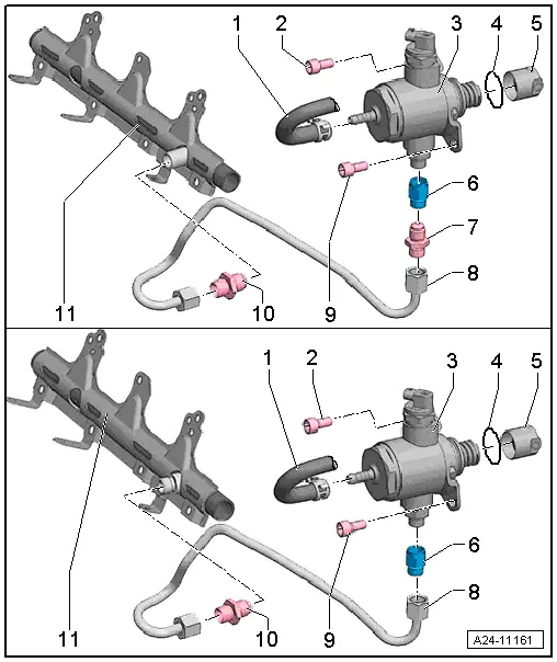 | q | The fuel system must not be under pressure when installing the high-pressure pump; procedure for reducing fuel pressure → Chapter |