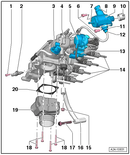 | 19 - | Throttle valve module -J338-, throttle valve drive for electric throttle -G186- |