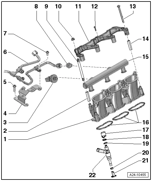 | Intake manifold (bottom section) with fuel rail - exploded view |