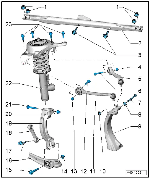 | q | Servicing suspension strut and mounting bracket → Chapter |