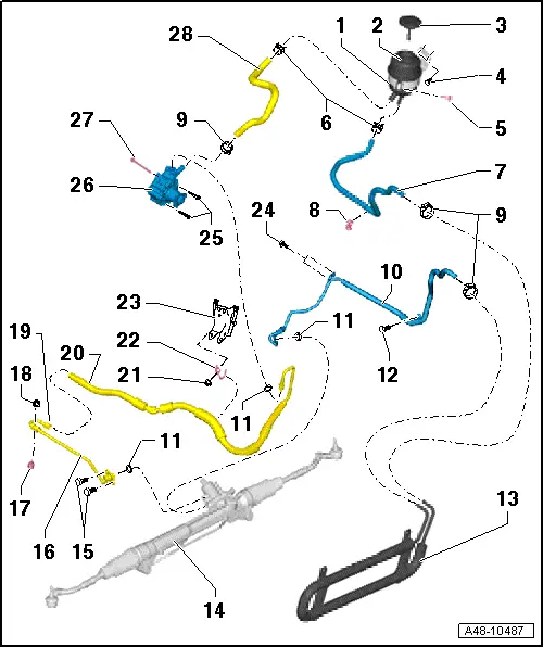 | Exploded view (vehicles with 4-cylinder diesel engine, vehicles with dynamic steering) |