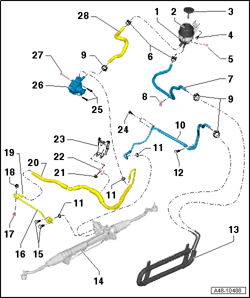 | Exploded view (vehicles with 4-cylinder TFSI engine, vehicles with dynamic steering) |