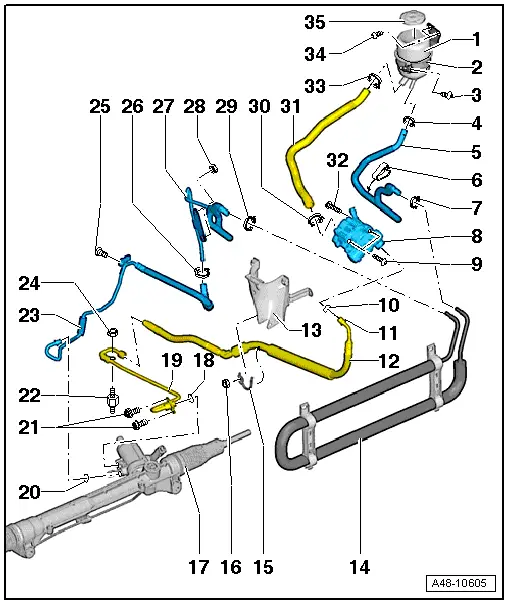| Exploded view (vehicles with 6-cylinder TFSI engine, vehicles with dynamic steering) |