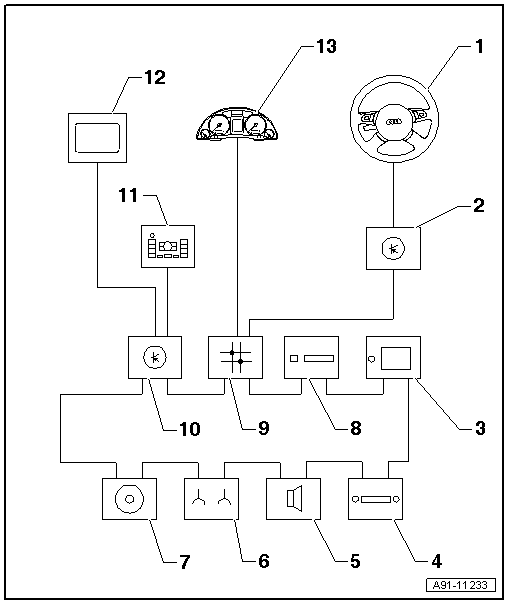 | 13 - | Control unit in dash panel insert -J285- in dash panel |
