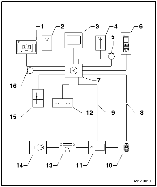 | 15 - | Data bus diagnostic interface -J533- behind glove box (left-side) |