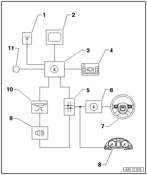 | 8 - | Control unit in dash panel insert -J285- in dash panel |
