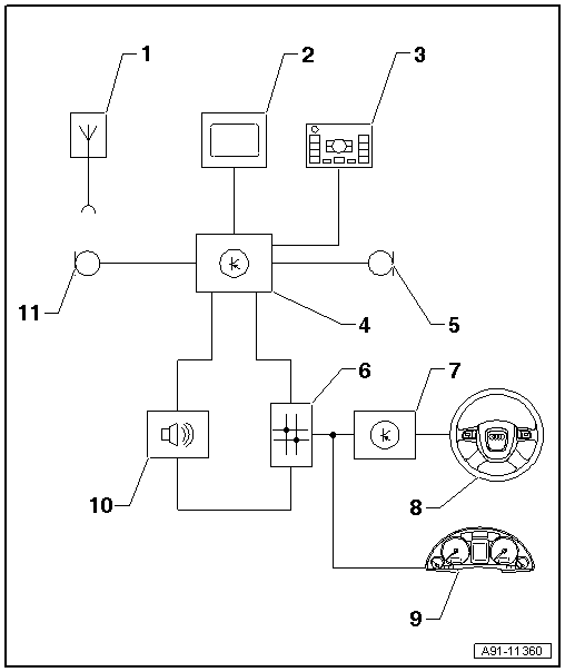 | 11 - | Microphone unit in front roof module -R164- (front left microphone -R140-) in front interior light -W1- |