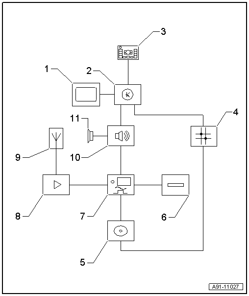 | 10 - | Digital sound package control unit -J525- behind luggage compartment side trim (left-side) |